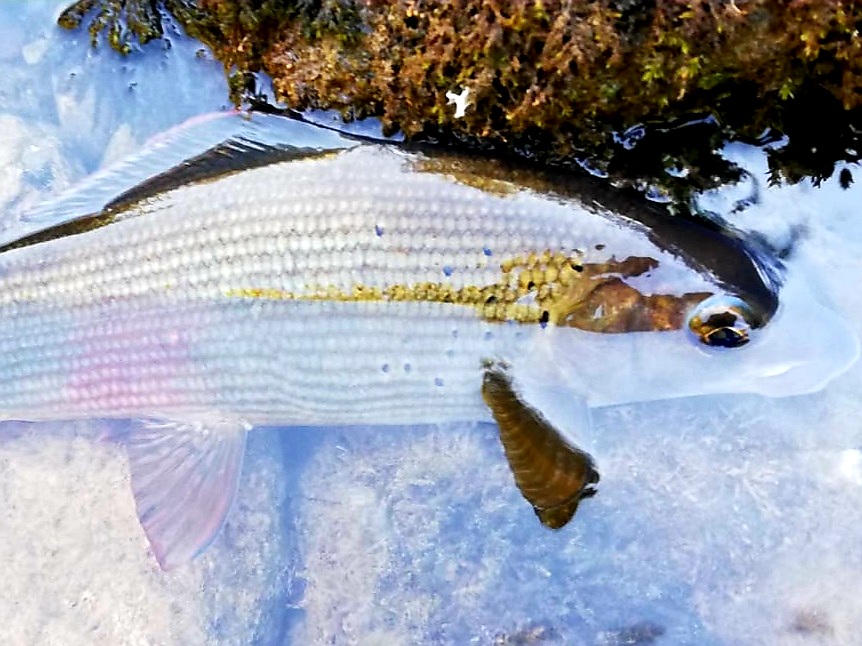 Grayling and trout here enjoy the rapids of this water and catch flies and nymphs that swim carried by the water current.